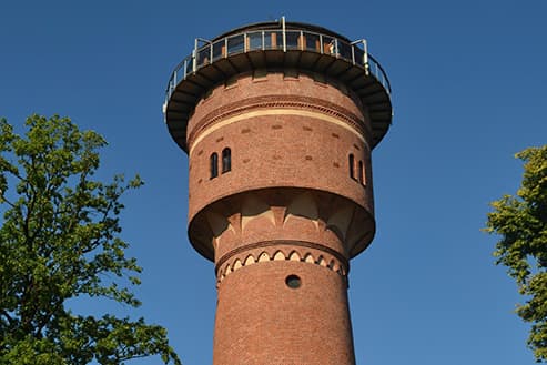 Zwana Wodną Wieżą, wybudowana w 1900 r. W całości zbudowana z czerwonej nie otynkowanej cegły, w stylu neogotyckim, z ciekawymi sklepieniami zewnętrznymi wokół jej korony. Cała wieża ma wysokość 25 m i jest otwarta dla zwiedzających chcących obejrzeć panoramę miasta i okolicznych jezior.